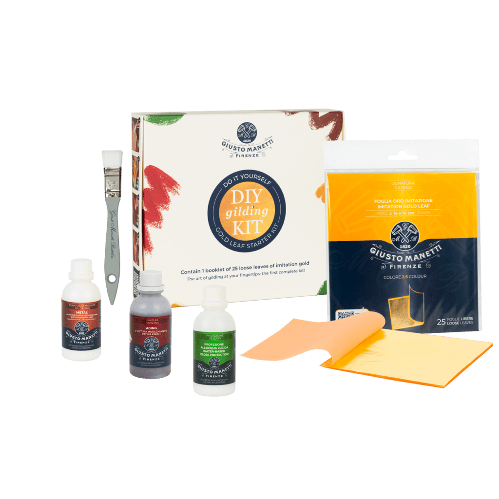Ideal for hobbyists and beginners, this kit offers an easy and creative way to discover the art of gilding. It includes everything you need to learn gilding techniques, with the option to experiment with an aged finish on frames, vases, boxes, and much more. The imitation gold leaf makes the experience more accessible, perfect for anyone looking to start without difficulty.